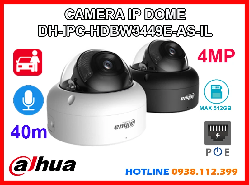 Camera IP Dome DH-IPC-HDBW3449E-AS-IL là lựa chọn lý tưởng cho giải pháp an ninh trong nhà, nổi bật với độ phân giải 4MP cho hình ảnh cực kỳ sắc nét cả ngày lẫn đêm. Nhờ tích hợp đèn trợ sáng và hồng ngoại 40m, camera ghi hình màu trong điều kiện ánh sáng yếu, đồng thời trang bị micro thu âm nguồn POE, khe cắm thẻ nhớ đến 512GB và công nghệ AI nhận diện chính xác người và phương tiện