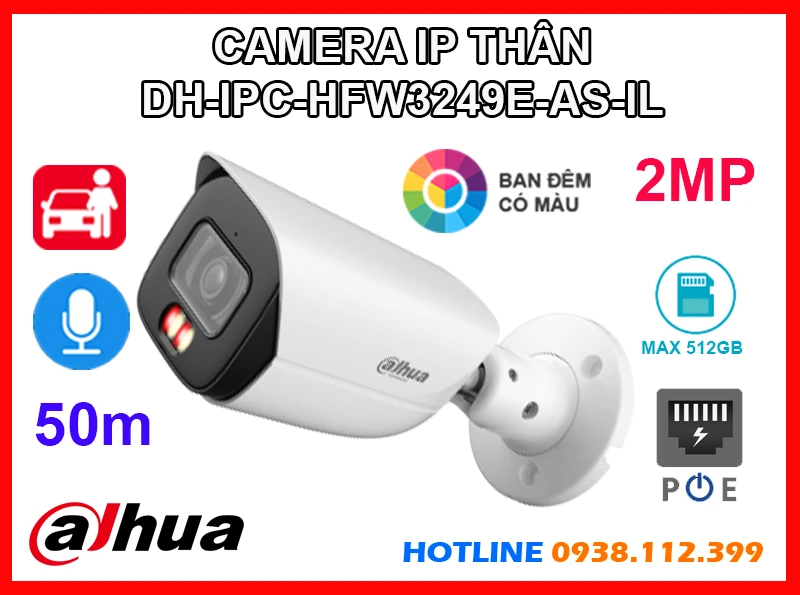 DH-IPC-HFW3249E-AS-IL là dòng camera thân cố định WizSense mang đến hình ảnh sắc nét chuẩn Full HD 2MP cùng khả năng ghi hình có màu vào ban đêm nhờ công nghệ đèn kép. Với tầm nhìn hồng ngoại xa tới 50m, mic ghi âm tích hợp và khả năng phân biệt chính xác giữa người và xe giúp giám sát hiệu quả và giảm thiểu cảnh báo giả, hỗ trợ khe thẻ nhớ lên đến 512GB, chuẩn chống nước IP67 giá rẻ