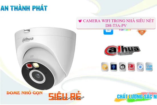 Thông số của camera DH-T5A-PV đây là loại camera giá rẻ Wifi Màu sắc trong sáng độ phân giải 5.0 megapixel Ultra 4k lite. Được trang bị chống ngược sáng DWDR hình ảnh ban đêm Full Color 30m. Phù hợp cho công trình dân dụng camera dome kim loại + nhựa sử dụng công nghệ mới IP Wifi