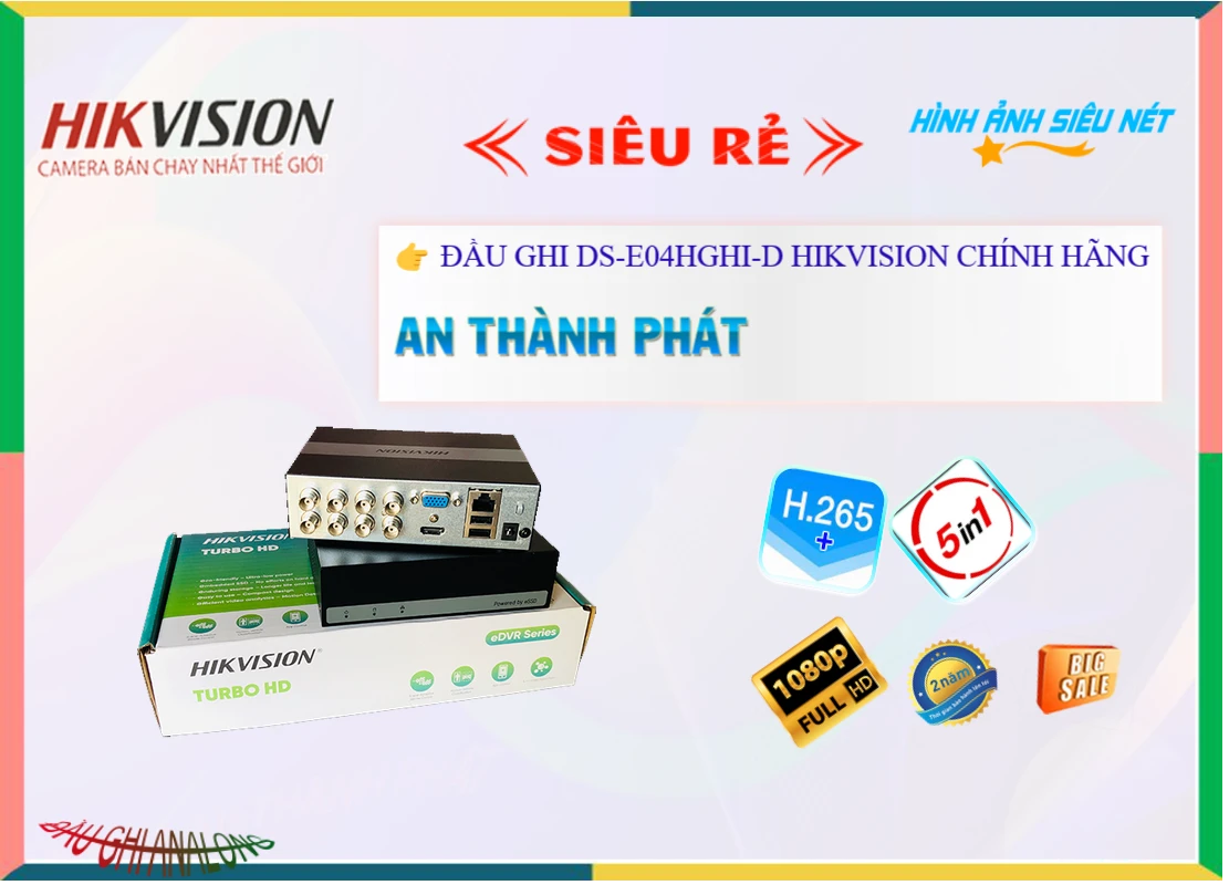 Đầu ghi Hikvision DS-E04HGHI-D là một Đầu ghi chất lượng của hãng Hikvision, một trong những tên tuổi hàng đầu trong ngành công nghiệp giám sát an ninh. Hãy cùng chúng tôi tìm hiểu về các tính năng và khả năng của Đầu ghi này: